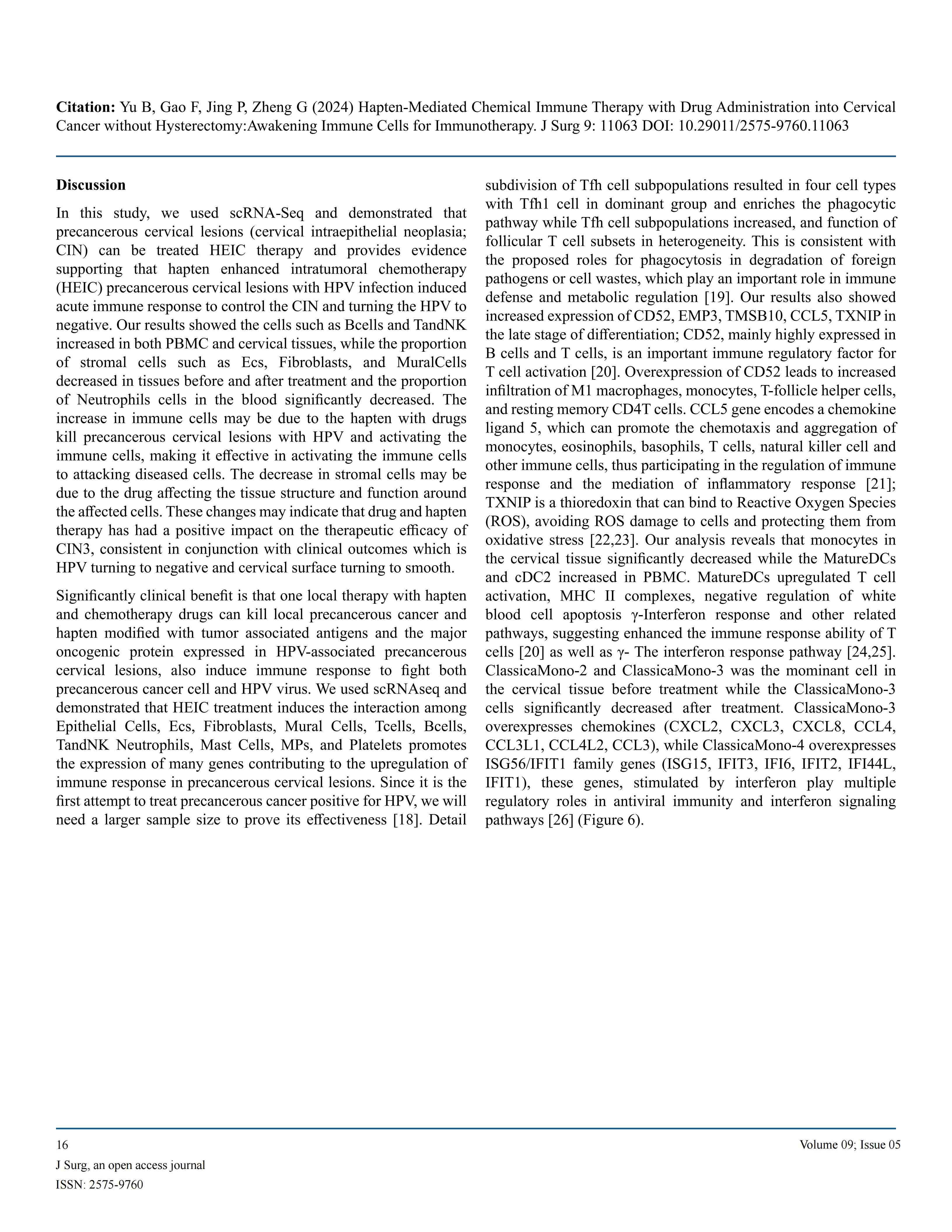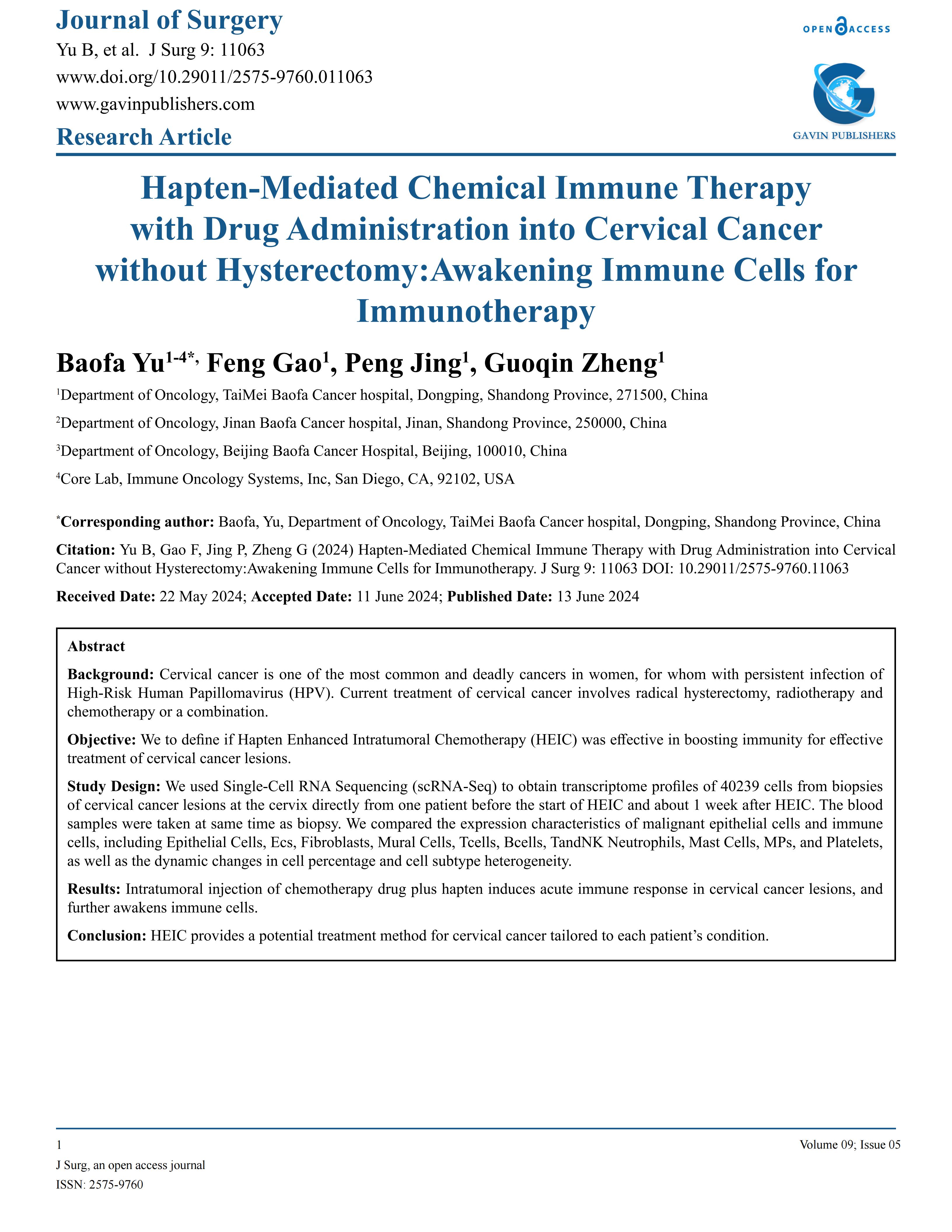 论文通过大量的临床数据分析,肿瘤内注射化疗药物加半抗原在宫颈癌病变中诱发急性免疫反应,并进一步唤醒免疫细胞。增强型肿瘤内化疗(HEIC)为宫颈癌患者提供了适合的潜在治疗方法,不用宫颈癌手术,就能够达到免疫外科学的效果。