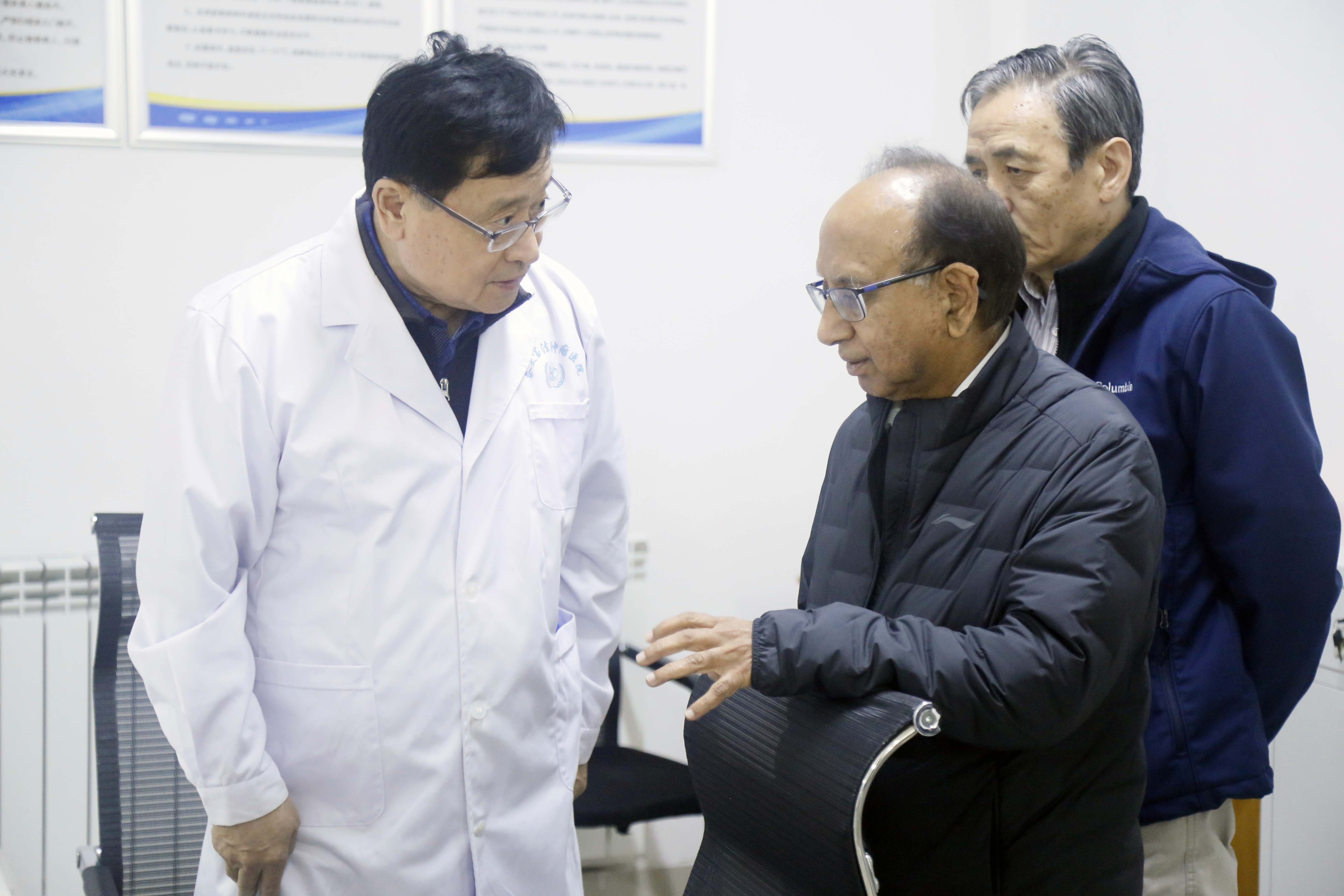 Saluja教授在于保法教授的陪同下参观了我院的临床科室,与患者亲切交流。然后又来到了病案室,看到一排排整齐的档案柜,里边装着满满的病历,代表着一个个康复的患者,病历越厚,代表患者的康复时间越长,Saluja教授看到后大为震撼!